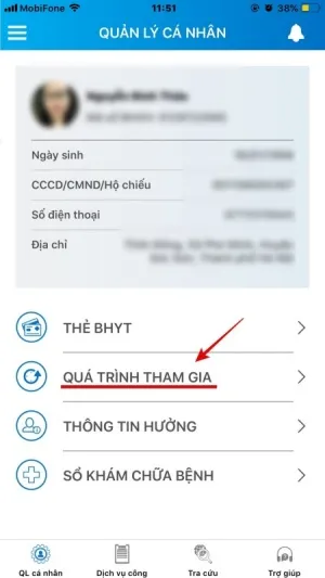 Bước 2: Tại Trang Quản lý cá nhân, chọn Quá trình tham gia.
